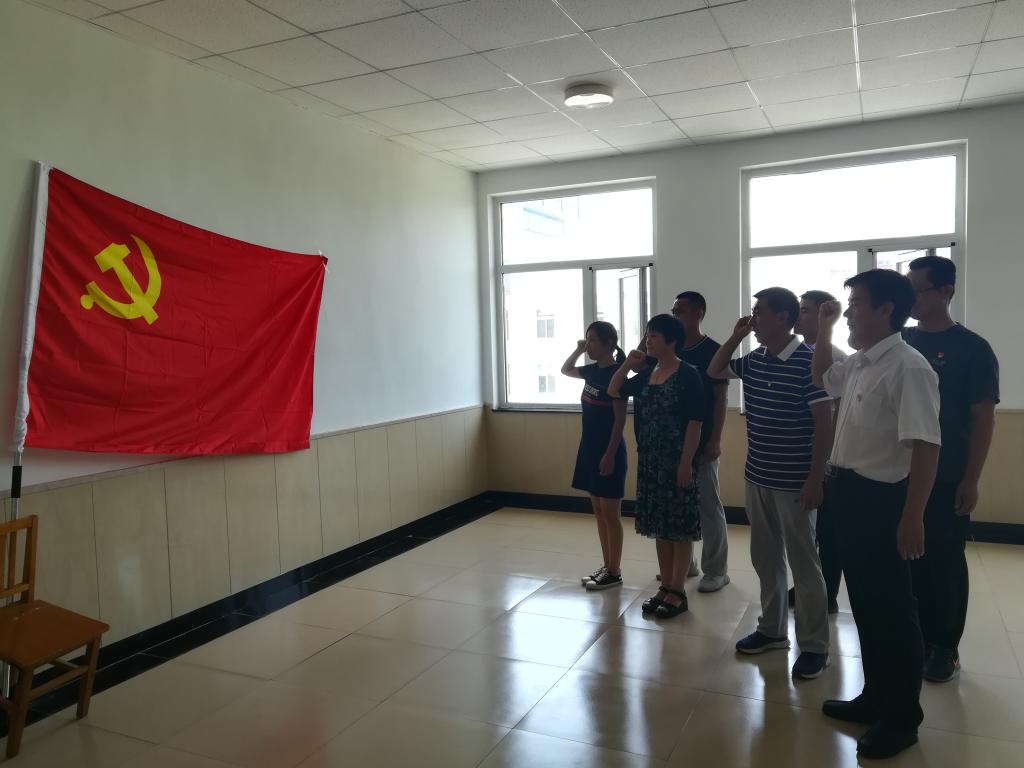 参加活动的全体党员佩戴党徽,重温了入党誓词,现场缴纳了7月份党费。在支部委员崔彬澎同志带领下学习了《中国共产党章程》第三章党的中央组织和《习近平总书记在深化党和国家机构改革总结会议上的重要讲话》。