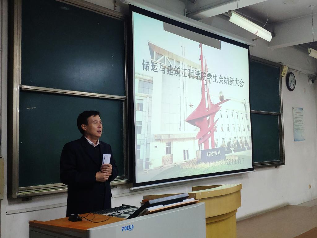 “在这硕果累累的季节,我们怀着无比激动的心情迎来了储运与建筑学院2019届学生会竞聘大会。”伴随着致辞的开始,我院学生会纳新大会就此拉开帷幕。 大会第一项,由副书记齐立军老师为本次会议致辞,齐老师指出“学生会是一支由学生组成的强有力的团队,是连接老师和学生的桥梁”。