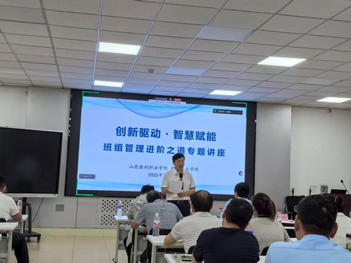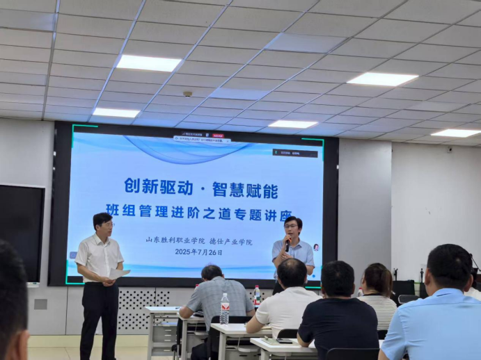 为全面提升企业班组管理水平,助力企业高质量发展,7月26日,德仕产业学院成功举办“创新驱动・智慧赋能:班组管理进阶之道”专题讲座。本次讲座特邀中国职业安全健康协会资深专家赵奇峰担任主讲,由山东胜利职业学院党委副书记、院长张玉珍教授主持,中国职业安全健康协会HSE推广工作委员会秘书长张磊做专题发言,本次讲座吸引了东营区近百名企业安全、生产管理人员及业务负责人参与。