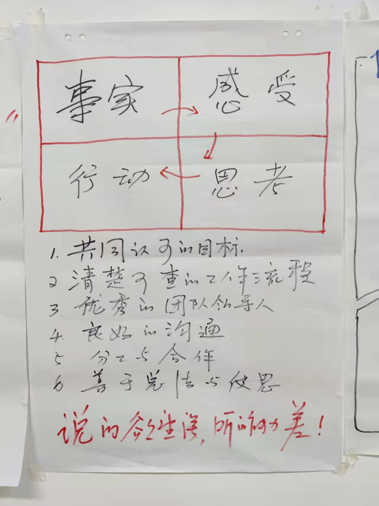 培训中,同学们用“世界咖啡”汇谈的形式,就如何做好班级工作进行深入探讨。“我们班级的情况?什么激发了我们的工作热情?哪些是我们的烦恼?今后的工作举措?”剥洋葱式的谈话让学生干部对自己所处的学习生活进行了深刻的剖析,形成了如何开展好工作的共识。