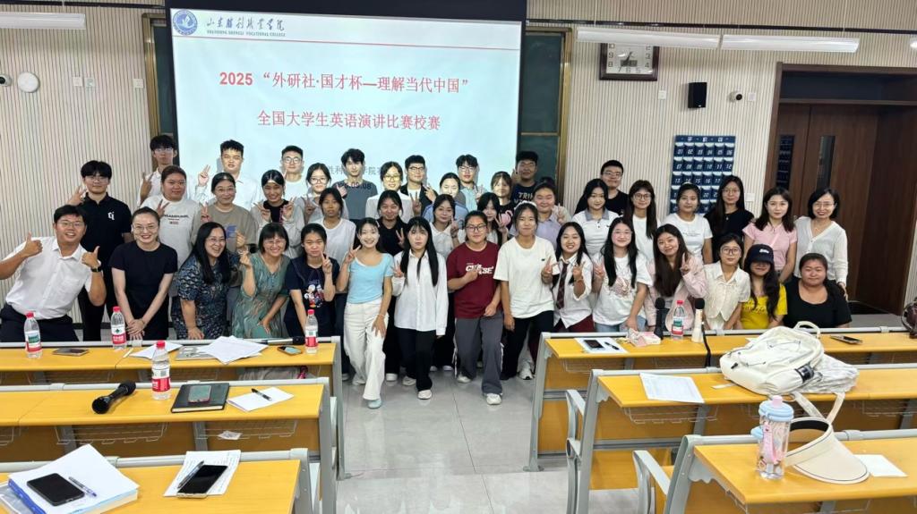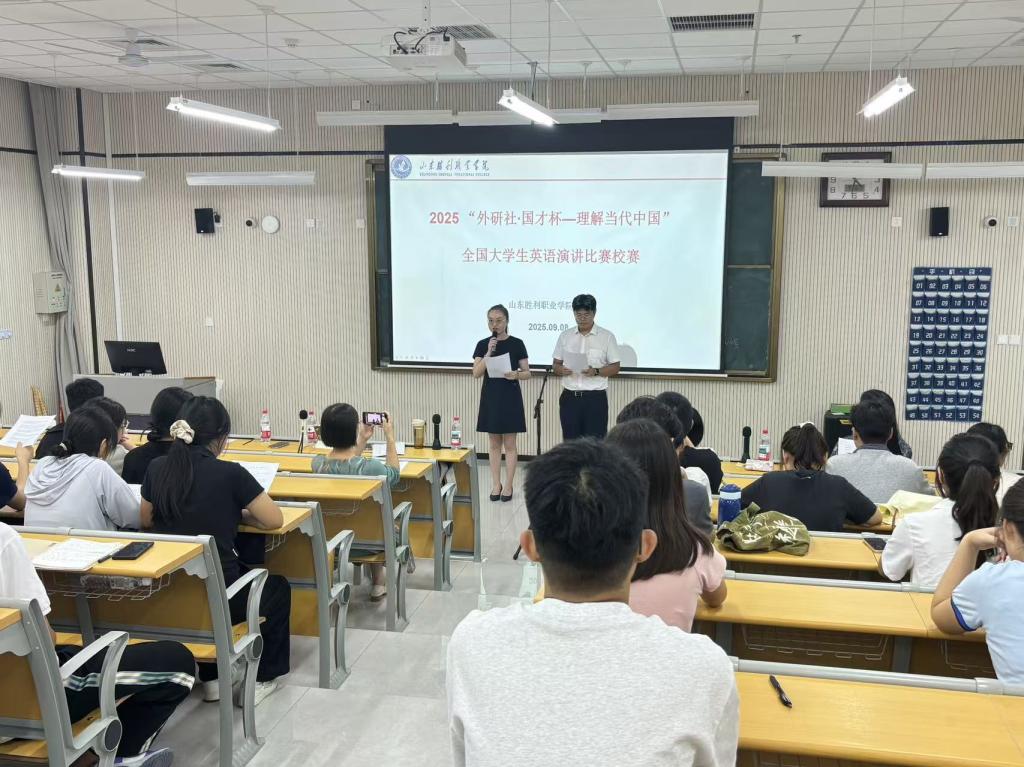 2025年9月8日,由国际学院承办的2025年大学生英语演讲大赛校园选拔赛在山东胜利职业学院华山路校区圆满落幕。本次比赛以"Future Industry, Future Me"为主题,汇集了来自全校各二级学院的39名优秀学子同台竞技。