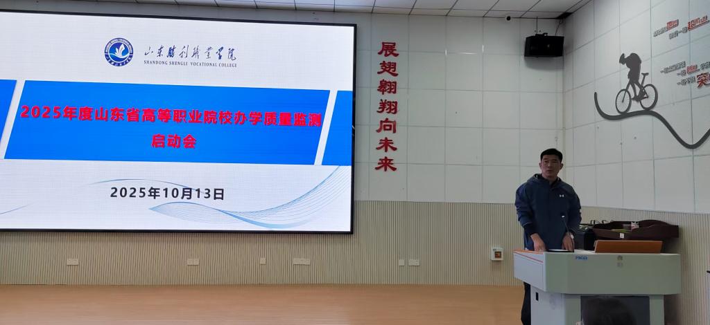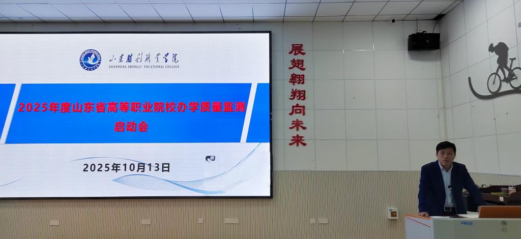 为进一步提升办学水平和人才培养质量,实现以测促建、以测促管、以测促教、以测促学,10月13日上午,山东胜利职业学院2025年度山东省高等职业院校办学质量监测启动会在济南路校区第一报告厅召开。学校领导、校长助理、二级学院及机关处室全体中层及其他相关人员,约60余人参加会议。会议由学校党委副书记杨峰主持召开。