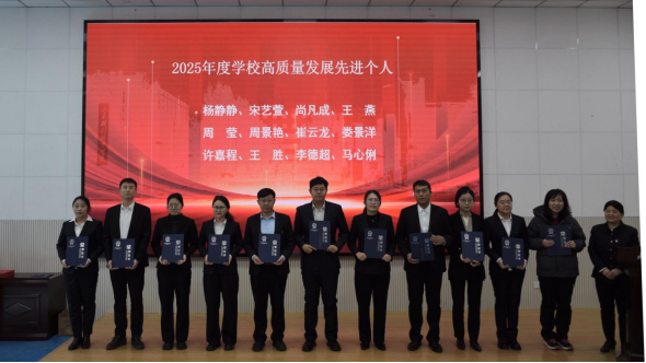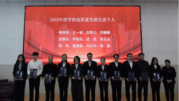 会上,孙卫娟副院长作《山东胜利职业学院2025年高质量发展工作总结报告》,并宣读表彰决定。报告全面回顾了过去一年学校在教育教学改革、师资队伍建设、产教融合深化等方面取得的突破性成果,系统梳理了发展实践经验;并对2025年度高质量发展先进个人、突出贡献个人和先进集体予以通报表扬,激励全校师生以先进为标杆,凝聚发展合力。