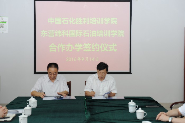9月14日上午,学院与山东科瑞集团在职业技能训练中心签署合作办学框架协议,山东科瑞集团副总裁闫石、学院院长张玉珍为科瑞集团企业大学—东营纬科国际石油培训学院实训基地揭牌。学院副院长王吉坡主持协议签字仪式。