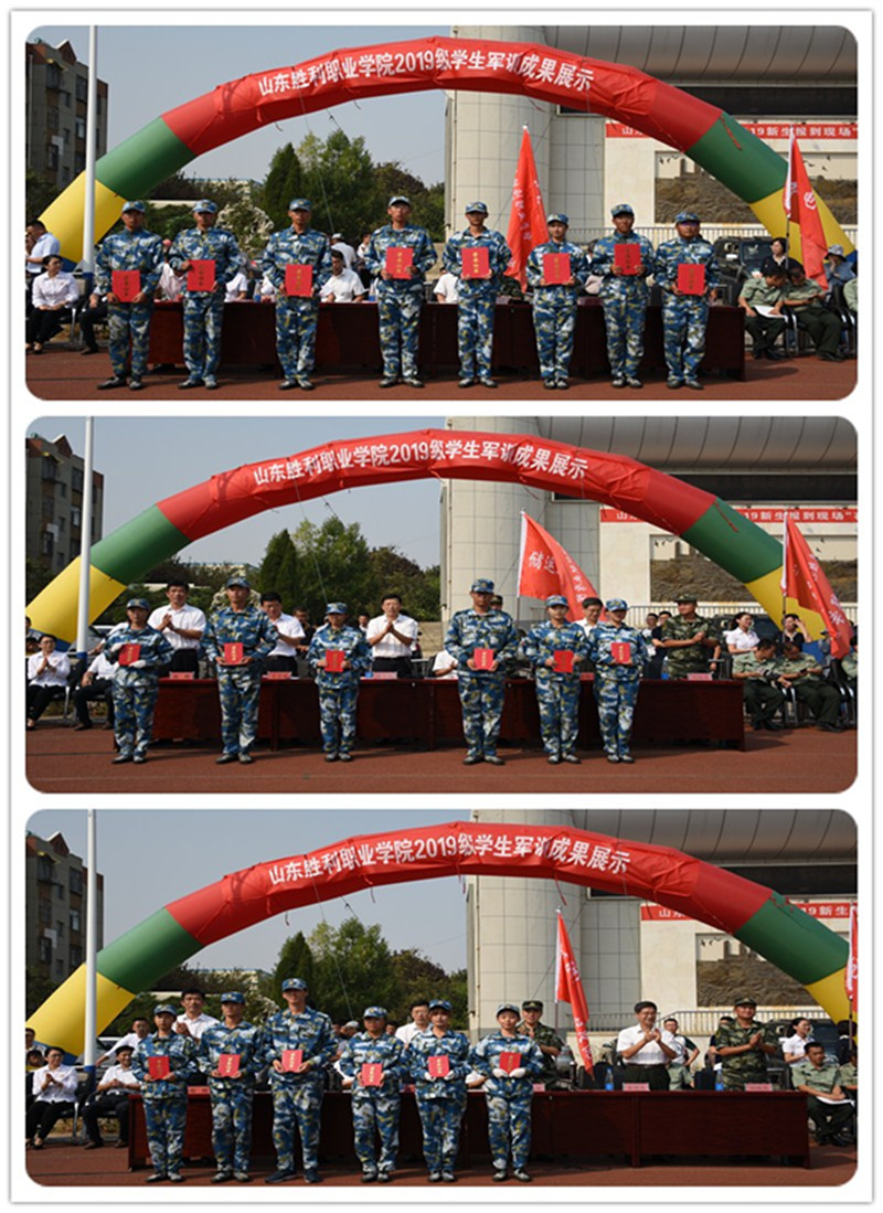 伴随着雄壮的军歌,山东胜利职业学院2019级新生军训成果展示顺利结束。