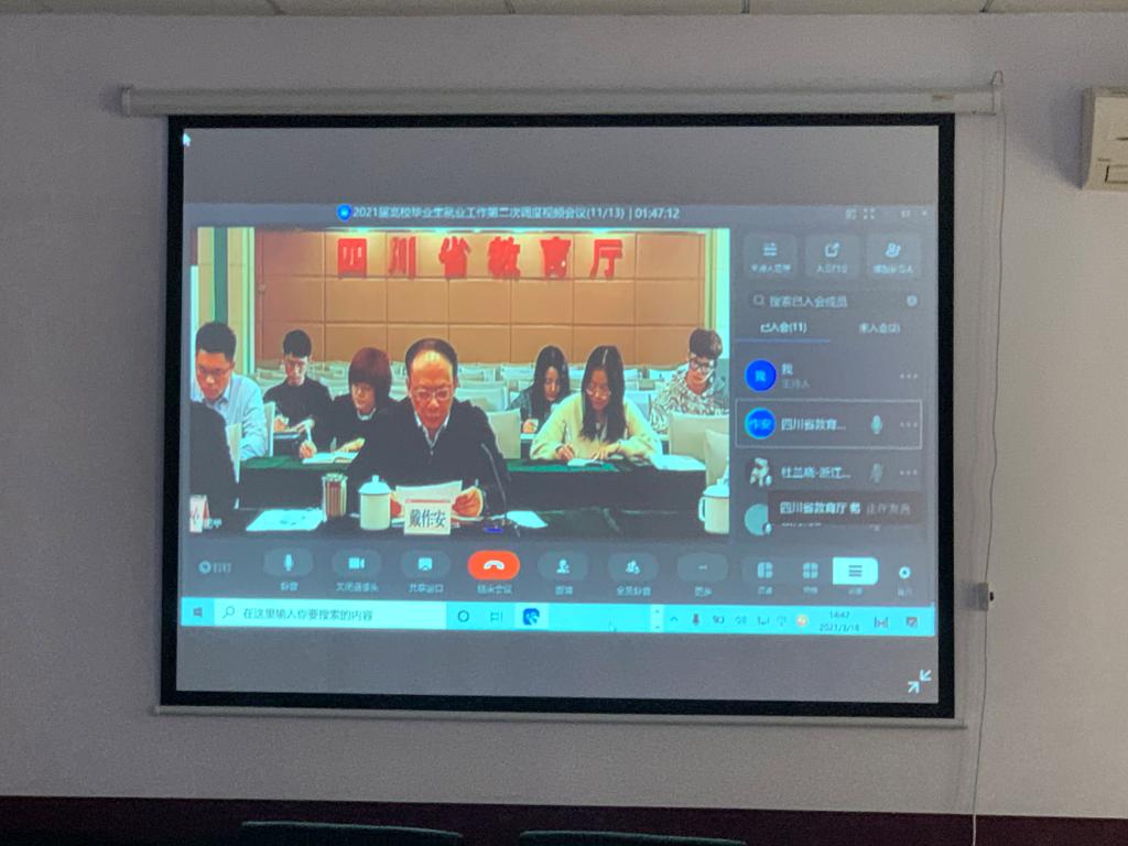 在视频会议中,广东省教育厅二级巡视员邱克楠、四川省教育厅厅长戴作安、内蒙古自治区教育厅副厅长成涛、中国政法大学副校长李秀云、太原理工大学党委书记郑强、浙江旅游职业学院校长杜兰晓及安徽理工大学辅导员张娜分别就2021届毕业生就业工作情况作了汇报。随后,全国就业中心副主任宁小华就24365智慧就业平台的使用作了相关介绍。