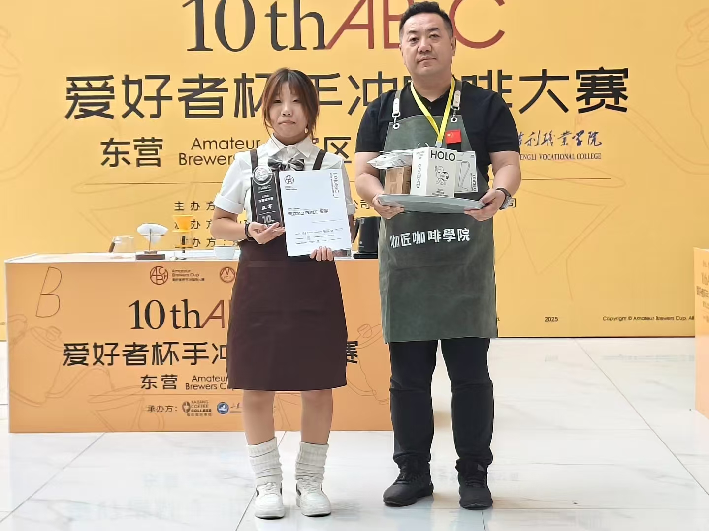 比赛中,选手们展现出精湛的冲煮技艺与专注的咖啡热情。尤为瞩目的是,山东胜利职业学院酒店管理学院24级酒店3班学生李鑫宇,在与经验丰富的社会专业选手同台竞技中发挥出色,历经多轮激烈角逐,最终斩获大赛亚军,充分体现了学院实践育人、以赛促教的优秀成果,也成为整场赛事的一大亮点。