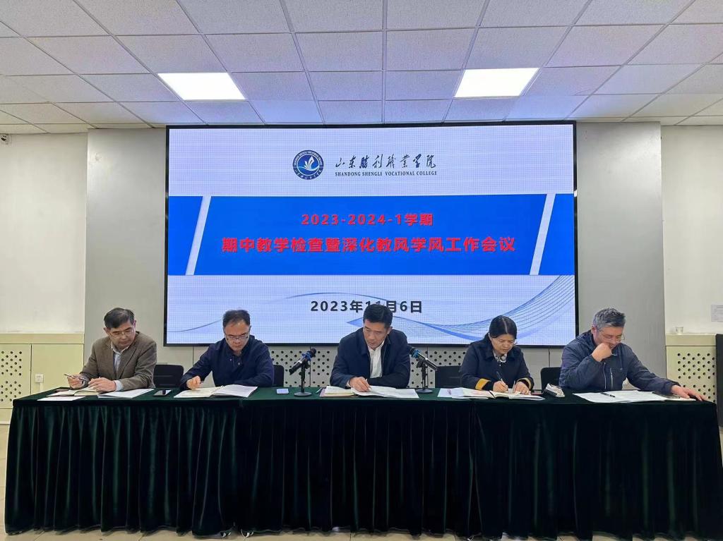 为加强教学诊改、深化教风学风建设,推进学校育人质量不断提升,落实立德树人根本任务。9月6日下午,学校在炎培学堂102室召开会议,布置本学期期中教学检查暨深化教风学风工作。山东胜利职业学院副院长杨峰、副院长孙卫娟,教务处、招生就业与学生工作处、信息中心等有关处室全体,以及各二级学院中层、综合干事、教研室主任、专职辅导员,机关处室上课人员等60余人现场参会。会议由副院长孙卫娟主持召开。
