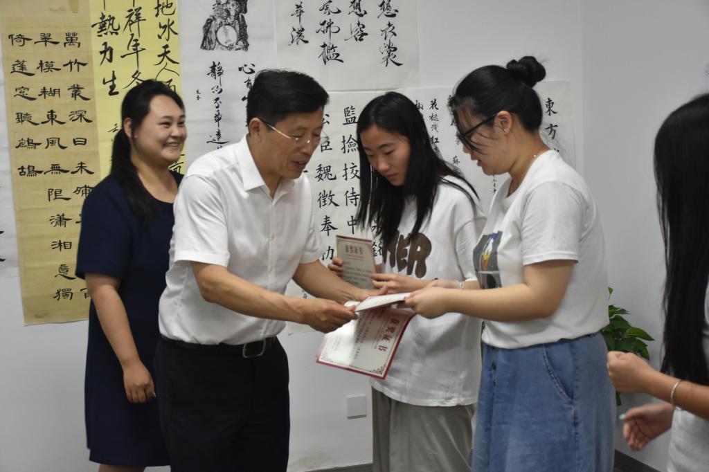 2024年7月1日下午,在山东胜利职业学院黄炎培书屋举办了一场小型、隆重的颁奖仪式,学校党委副书记.校长张玉珍教授与学校党委委员.副校长孙卫娟为本学期在“阅读集章”活动中获评校园“阅读达人”的学生们颁发荣誉证书,本学期由学校语委、教务处勤学部共同发起开展的“阅读集章”活动圆满结束。教务处、招生就业与学生工作处、团委、语委办的各位领导老师,以及勤学部的部分同学们共同见证这一光荣的时刻。