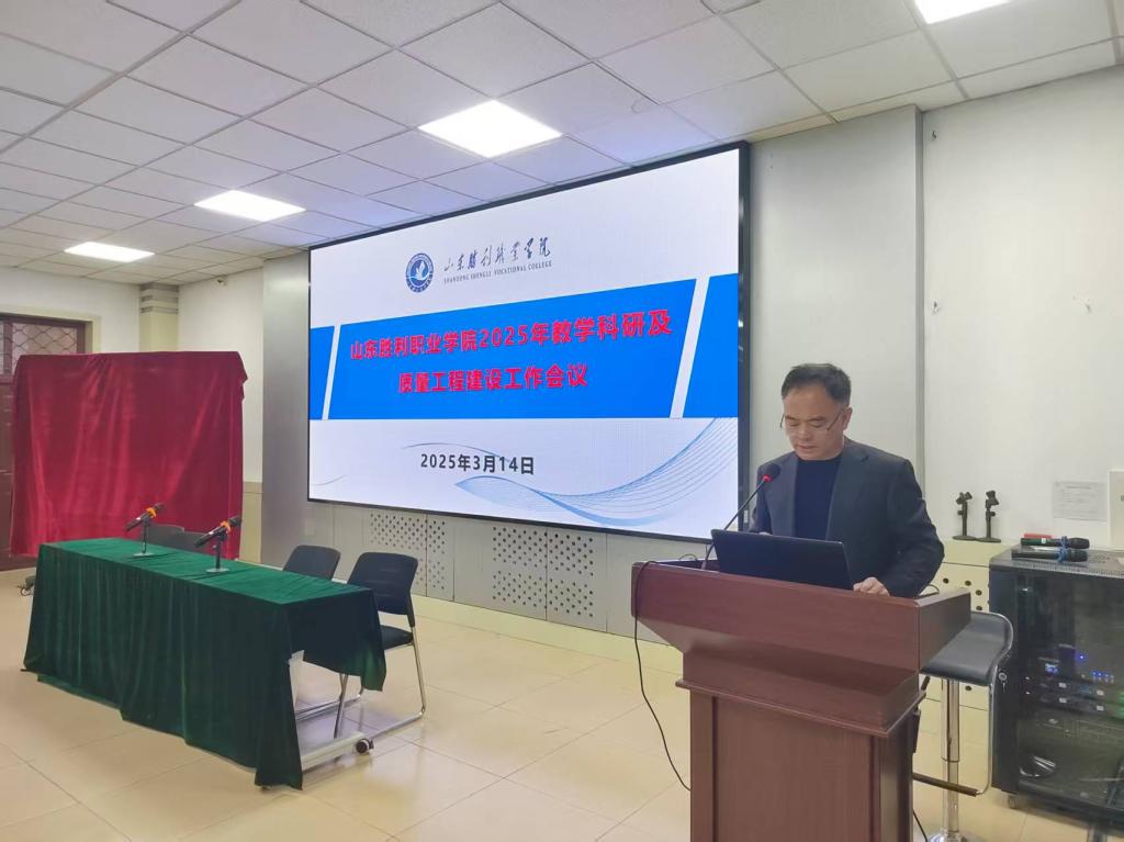 会上,教务处长刘宏强宣读《山东胜利职业学院2025年教学科研及质量工程建设工作计划》,从加快塑造立德树人新格局、打造学院产教融合新形态、大力推进“五金”建设、全面提升教师职业素养、拓宽学生成长通道、提升师生大赛水平、稳步推进科研工作、部署质量工程建设、积极拓展国际交流和合作等9大方面,对本学年工作进行全面解读和重点部署。