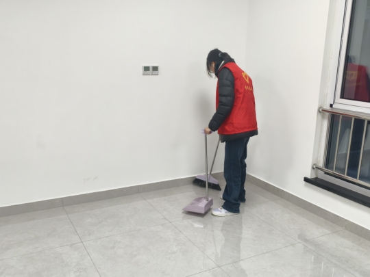 地面清扫组的志愿者们手持扫帚,从教室讲台区域开始,由内而外细致清扫。无论是过道中央的灰尘,还是墙角、课桌缝隙等卫生死角,都逃不过大家的眼睛。同学们弓着腰、迈着稳步,一遍遍地清扫,确保地面无杂物、无浮尘。对于清扫过程中扬起的细小灰尘,大家还特意放慢动作,避免灰尘扩散,尽显细致与用心。