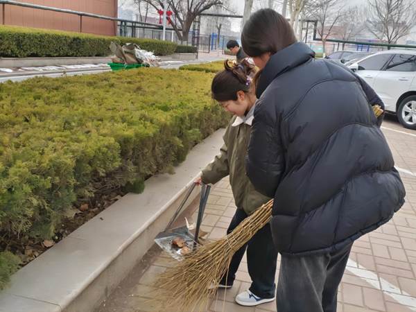 2024年2月28日,开学前夕油气多多志愿者们在校园中穿行,为迎接开学,营造美丽校园环境,给师生们带来干净,整洁的校园环境而行动。