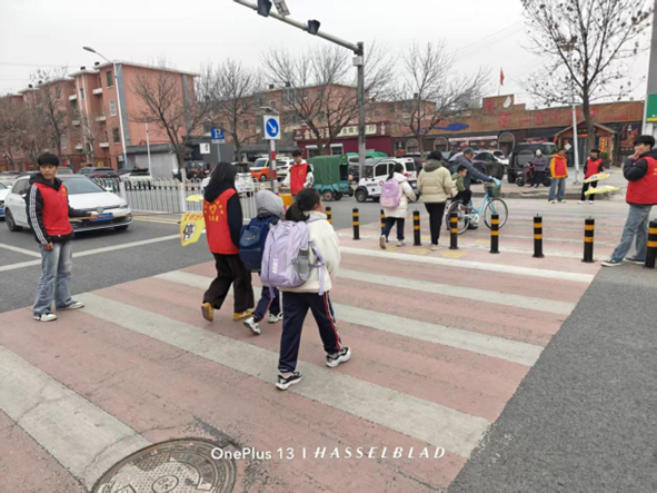 在志愿者的共同努力下,放学时段校园周边秩序井然、通行高效,切实缓解了高峰交通压力,为师生出行筑牢安全防线。