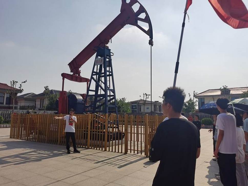 随着讲解员的讲述,学生们逐步走进了58年前那段艰苦卓越的历史,翻开了尘封的档案。通过了解华八井的伟大功勋,学生们仿佛置身于第一口井喷油时的场景,感受到石油工人们的欢呼雀跃。通过徜徉在油田奋斗发展史宣传长廊中,学生们对自力更生的奋斗精神以及“舍家忘我”的情怀有了更深的认识和感悟。