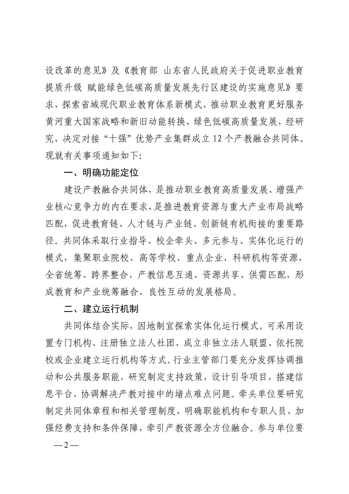 鲁教职函〔2023〕13 号山东省教育厅等8部门关于成立“十强”优势产业集群产教融合共同体的通知