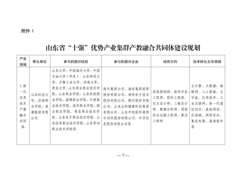 鲁教职函〔2023〕13 号山东省教育厅等8部门关于成立“十强”优势产业集群产教融合共同体的通知(1).pdf