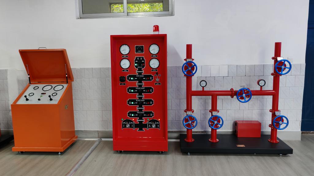 4. 井控安全操作实训:模拟溢流、井喷等风险场景,训练防喷器、节流压井管汇操作及压井作业流程,强化井控应急处置能力与安全作业意识。