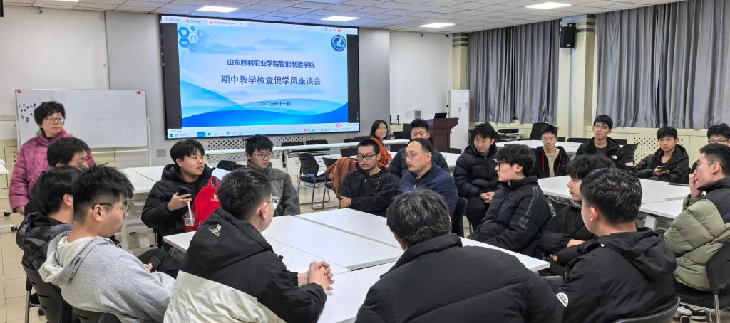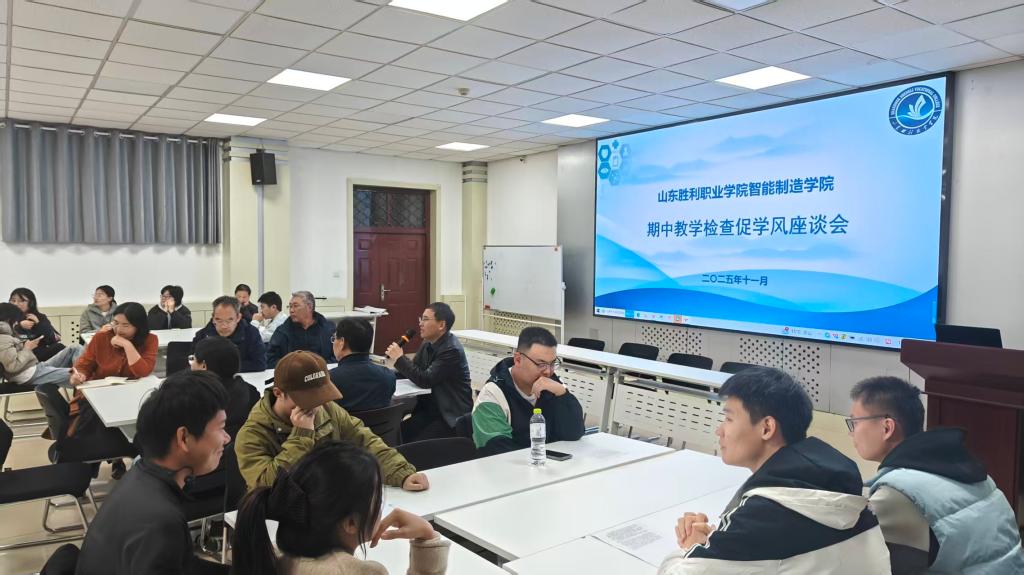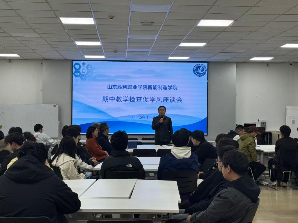 为强化学风建设、助力学生早日成材,山东胜利职业学院智能制造学院于2025年11月12日、13、16日连续三天召开期中教学检查“促学风 助成才”座谈会。座谈会聚焦学生学业发展核心需求,围绕课堂教学质量提升、专升本备考规划、技能证书获取路径及就业创业指导等议题展开深入探讨,旨在通过倾听学生心声,了解学生诉求,推动“以学生为中心”的教育理念落地。