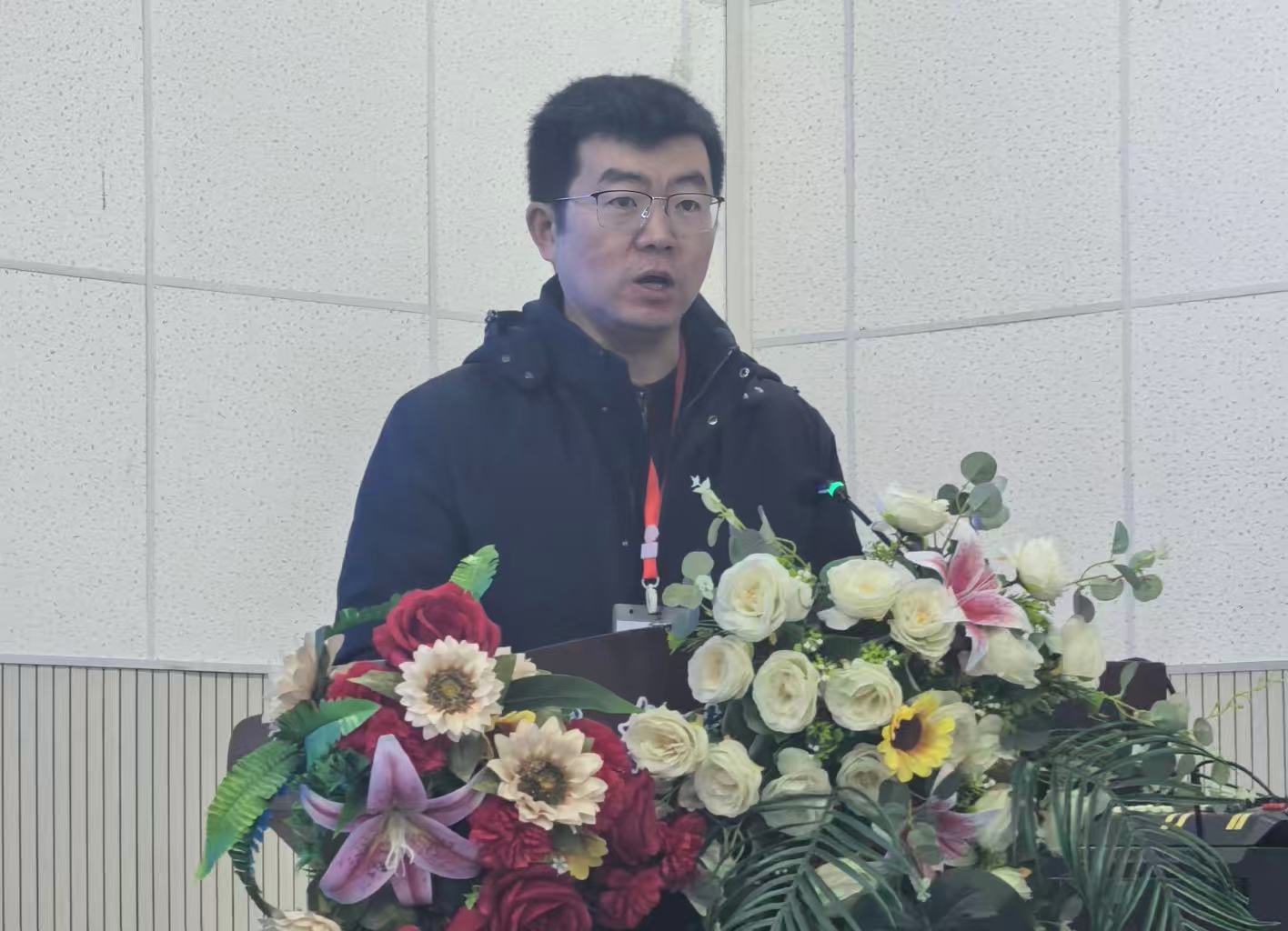 开幕式上,全体人员奏唱国歌,山东胜利职业学院党委委员、副院长王吉坡致欢迎辞,他代表学校对远道而来的领导、嘉宾、裁判及参赛选手表示热烈欢迎,详细介绍了学校在职业教育领域的办学特色、实训基地建设成果,并承诺学校将以专业的保障、周到的服务,确保赛事公平公正、顺利开展,为选手们搭建展现技能风采的优质平台。山东省信息产业协会职业技能评价中心主任董远洋致辞,他强调本次赛事是贯彻落实习近平总书记对技能人才工作重要指示精神的具体实践,是推动全省信息产业技术创新与人才培养的重要举措,协会将持续发挥行业引领作用,为技能人才成长搭建桥梁,助力山东信息产业高质量发展。裁判代表与选手代表分别宣誓,承诺恪守公平公正原则、全力以赴参赛。随后,参会领导、嘉宾与参赛选手合影留念,定格赛事启幕瞬间。