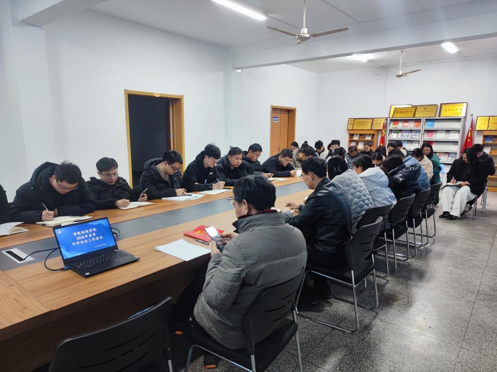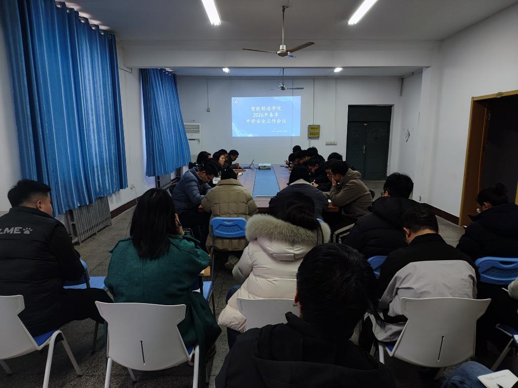2026年2月28日,智能制造学院组织全体教师召开2025-2026学年春季学期开学安全工作会议,聚焦学生安全、学业发展与日常管理,全面部署新学期教学学管重点工作。