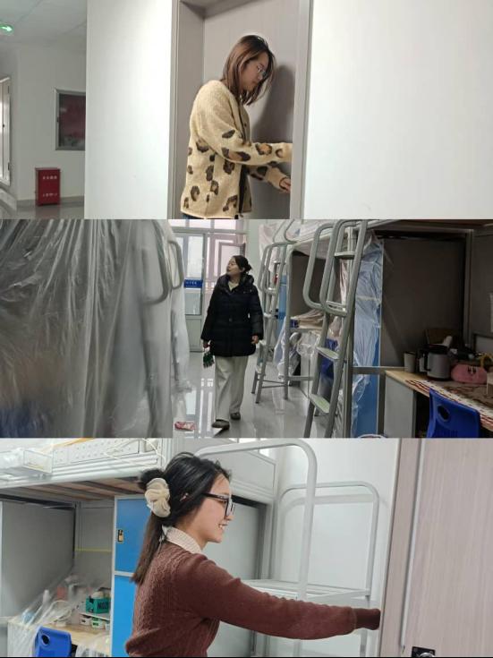 检查过程中,辅导员老师们逐楼、逐层、逐间走访新生宿舍,重点围绕宿舍用电安全、消防安全、环境卫生、设施完好**四大方面开展细致排查:严查违规电器、私拉乱接电线、插线板不规范使用等安全隐患;检查门窗、床具、水电设施是否完好;清理宿舍卫生死角,排查易燃杂物堆积问题;同步查看消防通道是否畅通、应急设施是否完备。对排查中发现的问题现场登记、立行立改,切实把安全隐患消除在萌芽状态。
