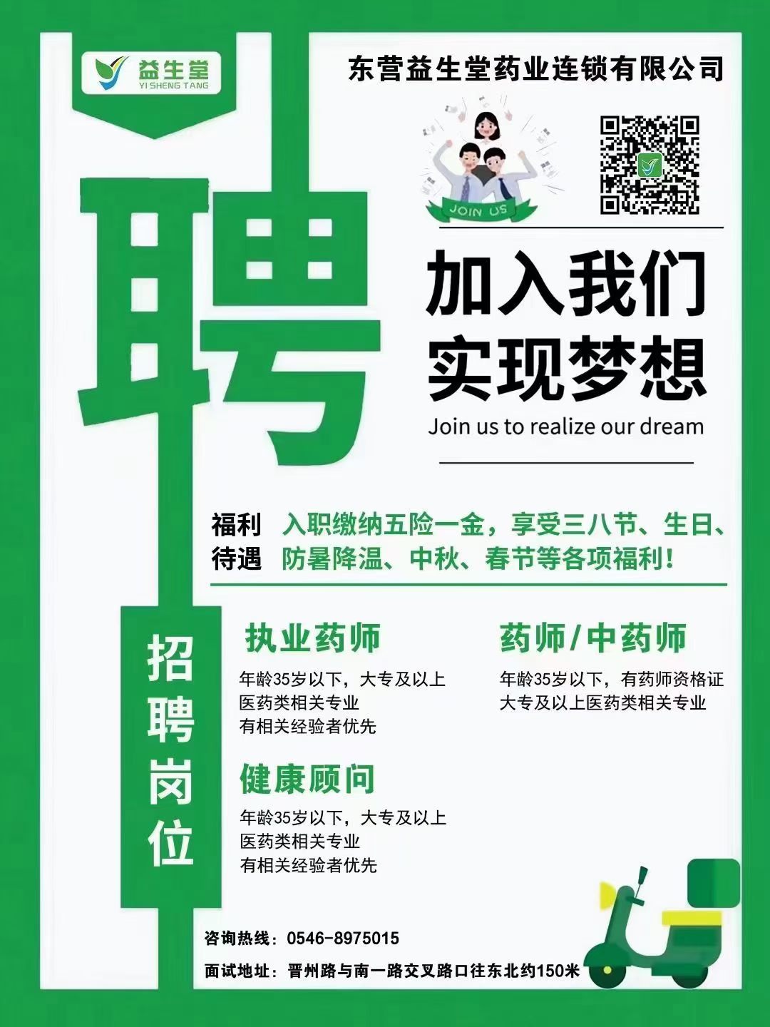 招聘信息——东营益生堂药业连锁有限公司